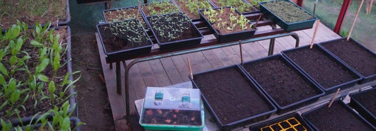 Venons-en aux semis. Nous disions qu’il fallait réaliser au moins 4000 plants, en partie pour le jardin et en partie pour la vente. Le coin pépinière de la serre adossée est lancé !