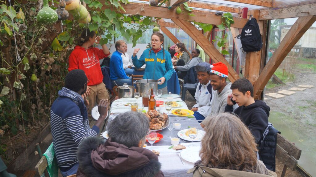 Vient ensuite le dessert. N’ayant pas de dessert qui puisse pousser en ce moment dans le jardin, tout le monde a préparé un petit quelque chose, si bien que nous nous sommes retrouvés avec une multitude de desserts qu’il eut fallut tous goûter…