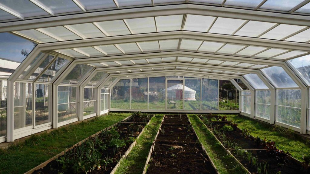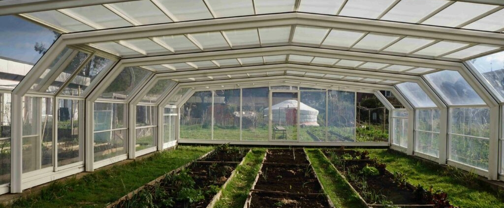 Nous en avions parlé dans le précédent article : la serre abri de piscine était en cours de montage. Et bien cette fois c’est fini pour de bon, la serre est montée et prête à recevoir les cultures. Cela a demandé un gros effort mais le résultat est très satisfaisant !