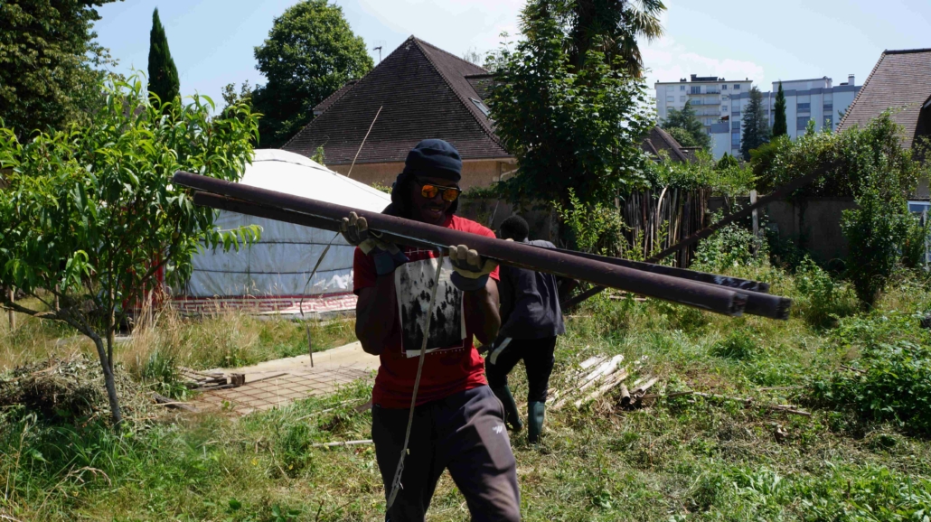 Un exemple d’activité, parmi d’autres : la fabrication de structures de tuteurages mobiles et multifonctions (permet de tuteurer courges, haricots, tomates, etc). Après être passé par une R&D exigeante, nous passons en production industrielle avec Romane en maître d’ouvrage.