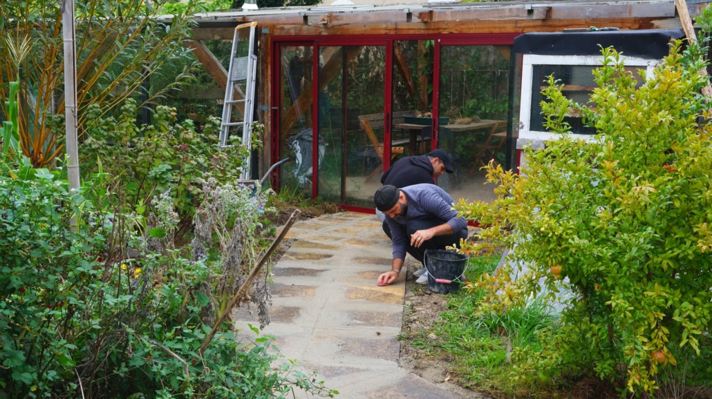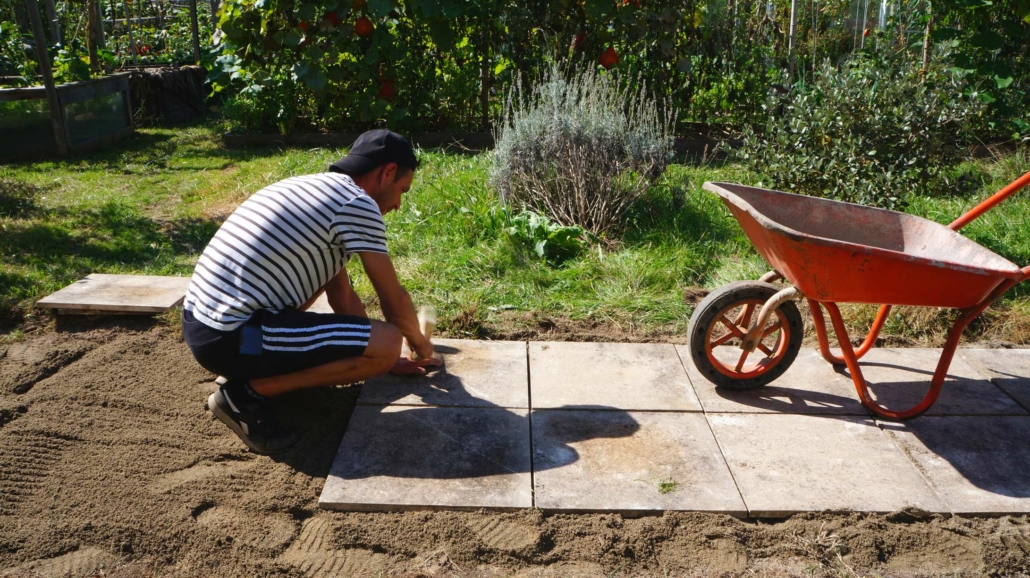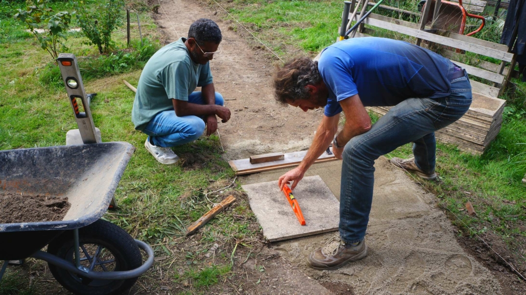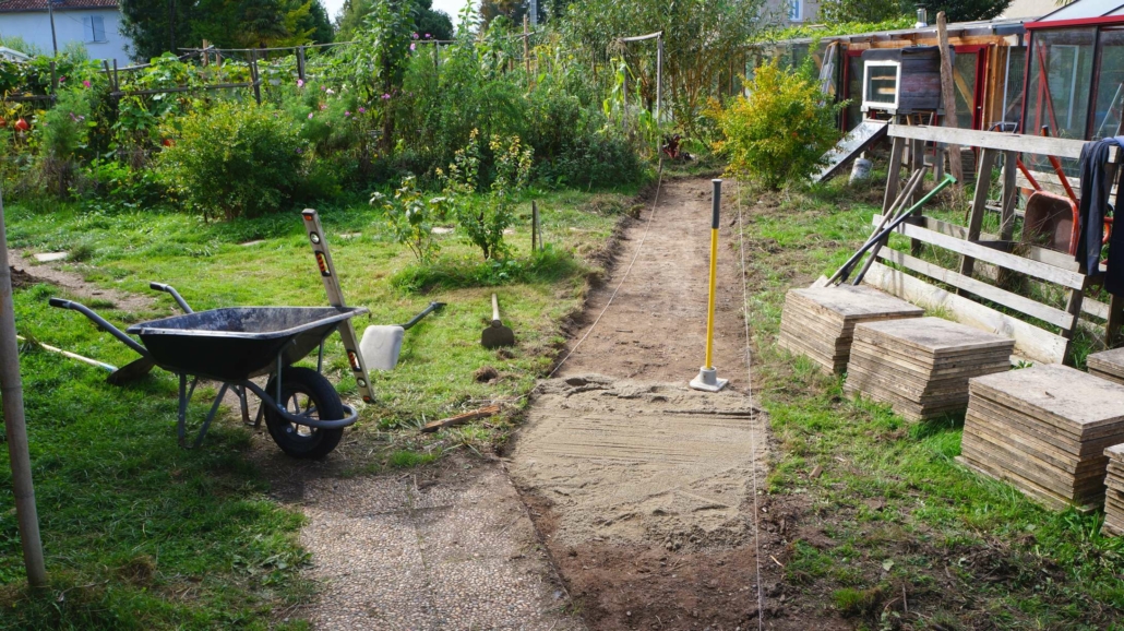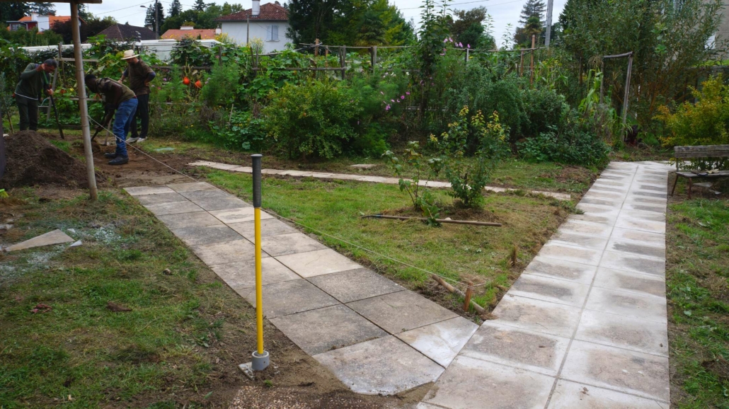 Un nouveau chantier viens d’être lancé : la construction de grandes allées en dalles. Le but est de rendre le jardin accessible aux personnes à mobilités réduites, aux poussettes, etc, afin que le plus de monde possible puisse profiter de ces petites fleurs. Par ailleurs cela permettra d’éviter la boue dans les grands axes qui nous importune tout l’hiver…