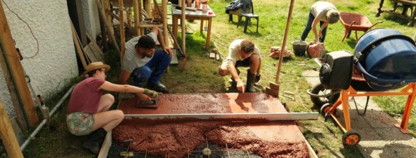Ce fut aussi un mois de travaux, avec la construction d’une dalle béton pour le point de vente. Hardi, maintenant dans la vie active (pour ceux qui ont suivi), est venu en renfort…